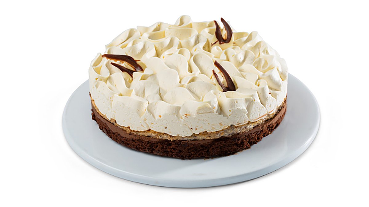 עוגת שכבות של פאדג' שוקולד, מוס שוקולד בלגי, דקוואז נוגט (אגוזי לוז) ושנטילי וניל