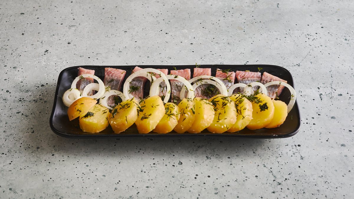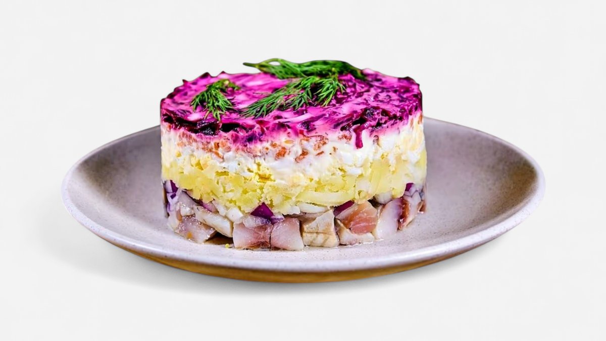 סלט שכבות מסלק, תפוחי אדמה ודג מלוח