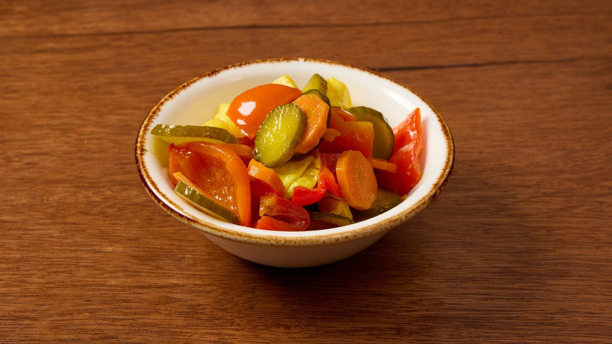 עגבניות שרי, מלפפון, בצל סגול וקולורבי