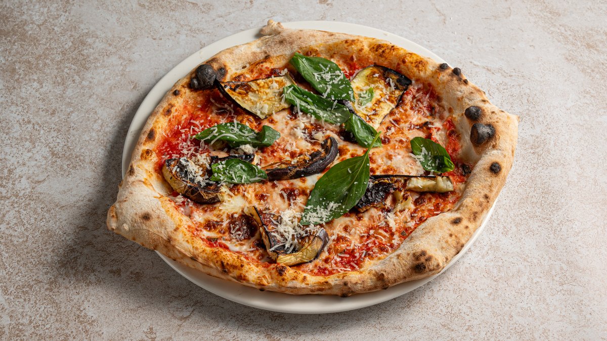 רוטב עגבניות, סטייק חצילים, מוצרלה, בזיליקום, פקורינו וגרנה פדנו. שימו 💙 מומלץ לחמם את הפיצות למשך 2 דקות בתנור שחומם מראש לחום מקסימלי
