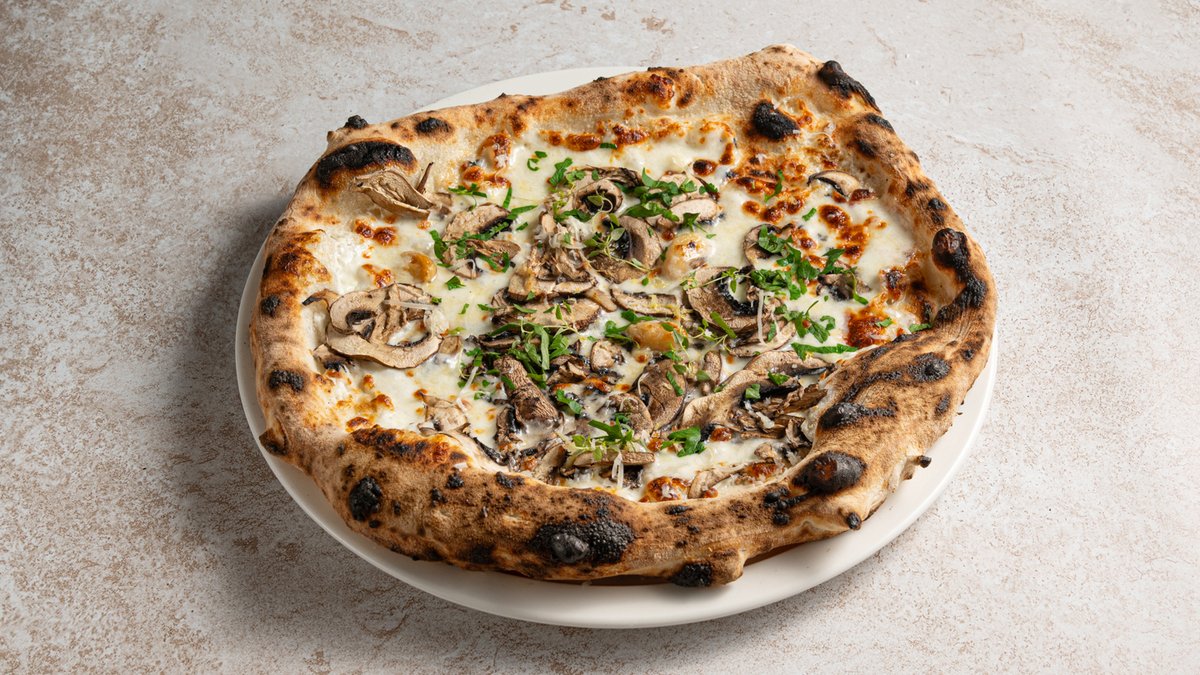 קרם פרש, מוצרלה , פורטובלו, גבינת גרנה פדנו, קונפי שום וטימין, פטרוזליה וגרידת לימון. פיצה לבנה ללא רוטב עגבניות שימו 💙 מומלץ לחמם את הפיצות למשך 2 דקות בתנור שחומם מראש לחום מקסימלי