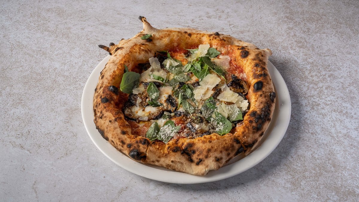 רוטב עגבניות, סטייק חצילים, מוצרלה, בזיליקום, פקורינו וגרנה פדנו. שימו 💙 מומלץ לחמם את הפיצות למשך 2 דקות בתנור שחומם מראש לחום מקסימלי