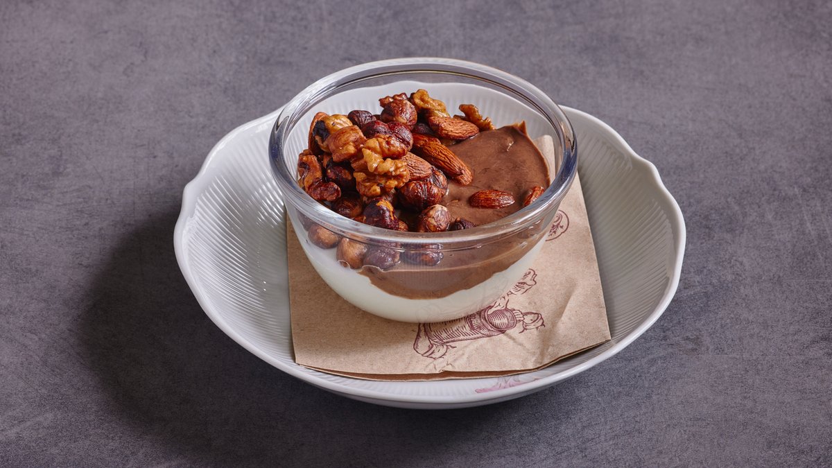 קרם צחור, נופת צופים (שומשום, אגוזי לוז וקקאו טחונים), שקדים ואגוזים קלויים