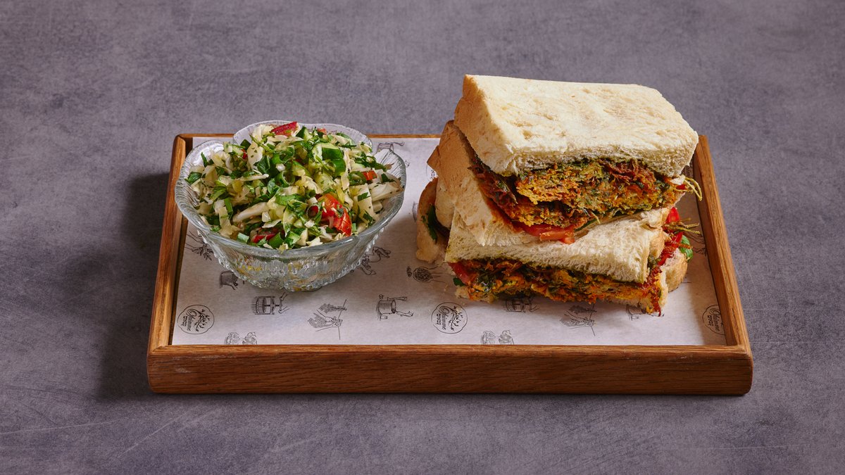 לחמנית חלב, טחינה, כוסברה חריפה, לימון כבוש, חביתת ירק, פטרוזיליה, עגבניה