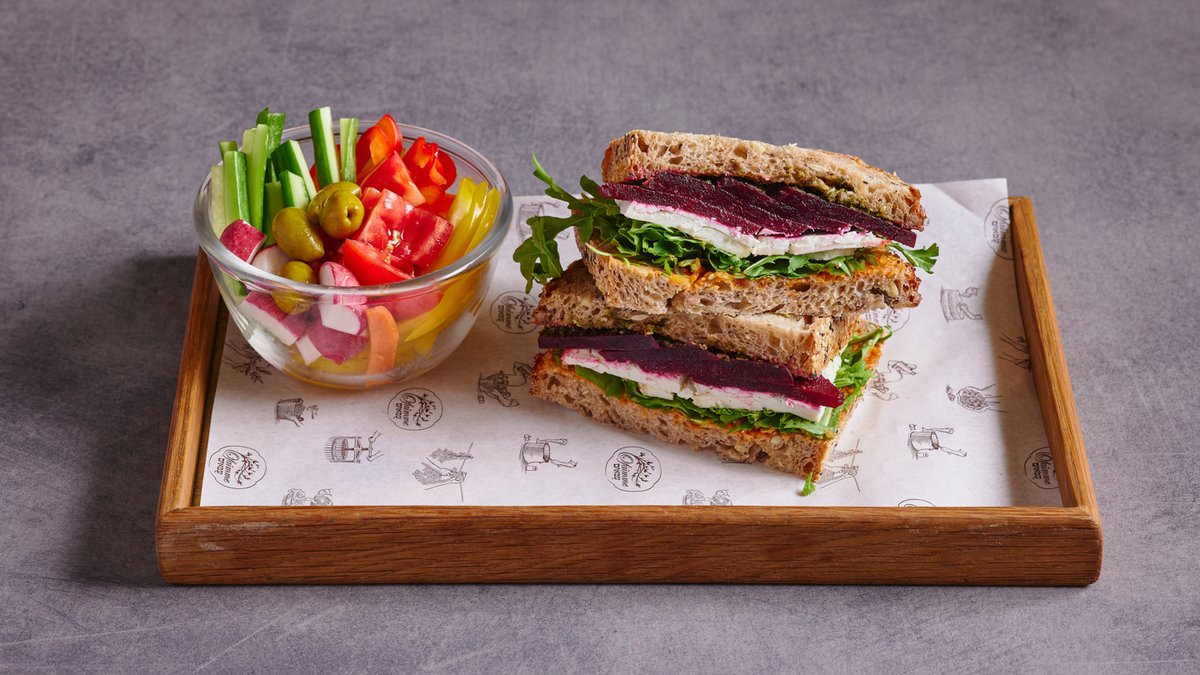 לחם שאור דגנים, ממרח זעתר, לימון כבוש, גבינות בשלות, סלק, עלים ירוקים.