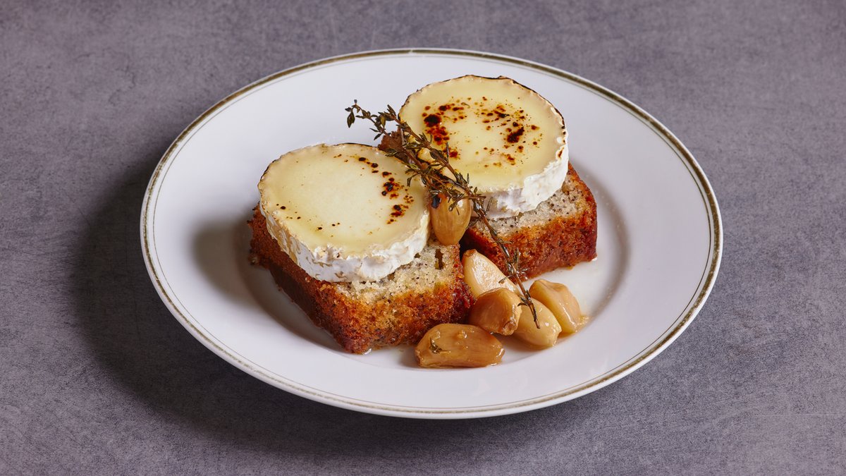 גבינת עמלי, פרוסת עוגת פרג ולימון קלויה בשמן זית, מרקחת דבש וטימין