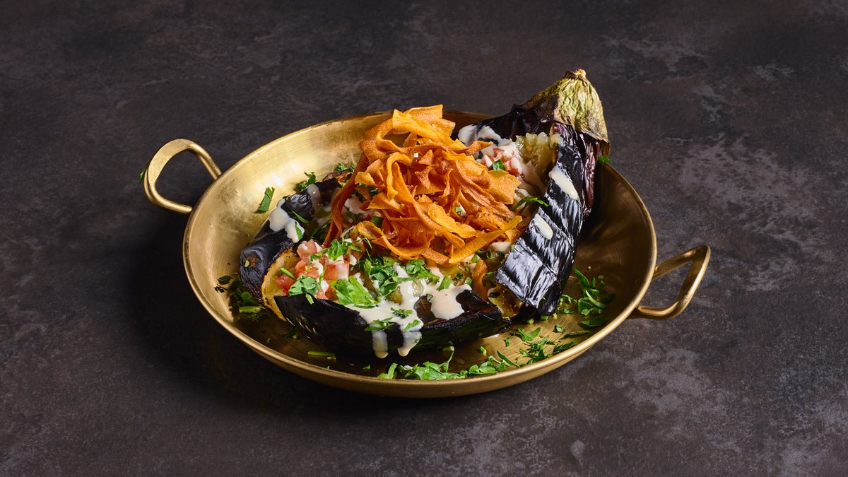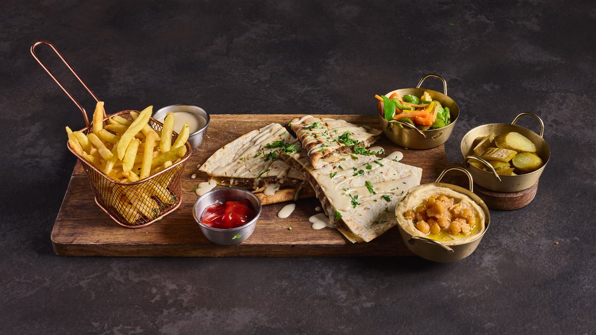 בשר עגל בתוך טורטייה על האש, עם טחינה מעל