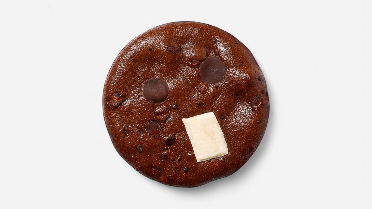 שלושה סוגי שוקולד, עוגייה כהה על בסיס קקאו ושוקולד מריר עדין, עם שברי שוקולד חלב