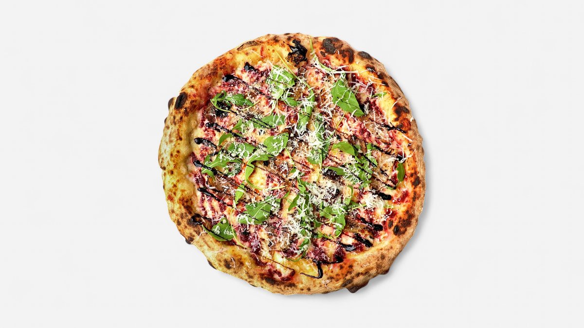 בשמל, קרם סלק, גאודה, מוצרלה, עלי בייבי, גבינת עיזים, חומץ בלסמי מצומצם, בצל צלוי, פרמז'ן ושמן זית שימו 💙- עלי הבייבי יגיעו לצד המנה