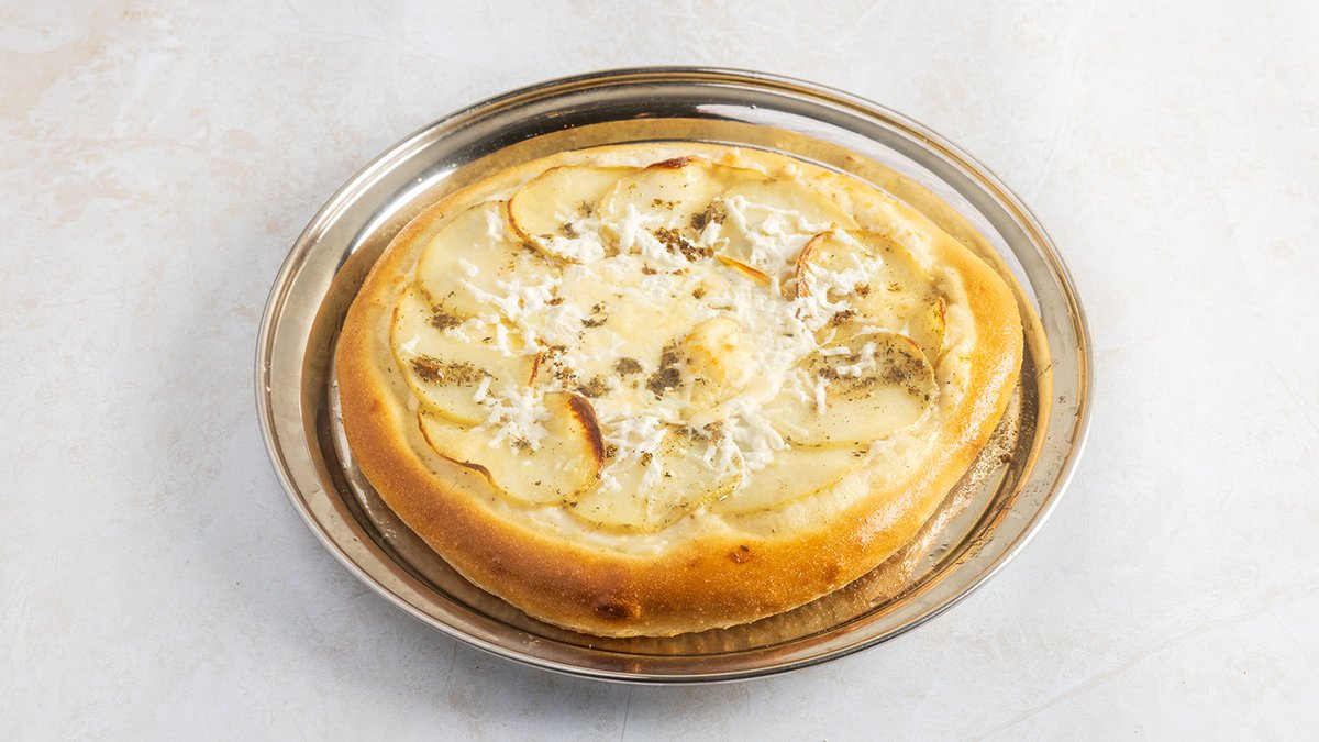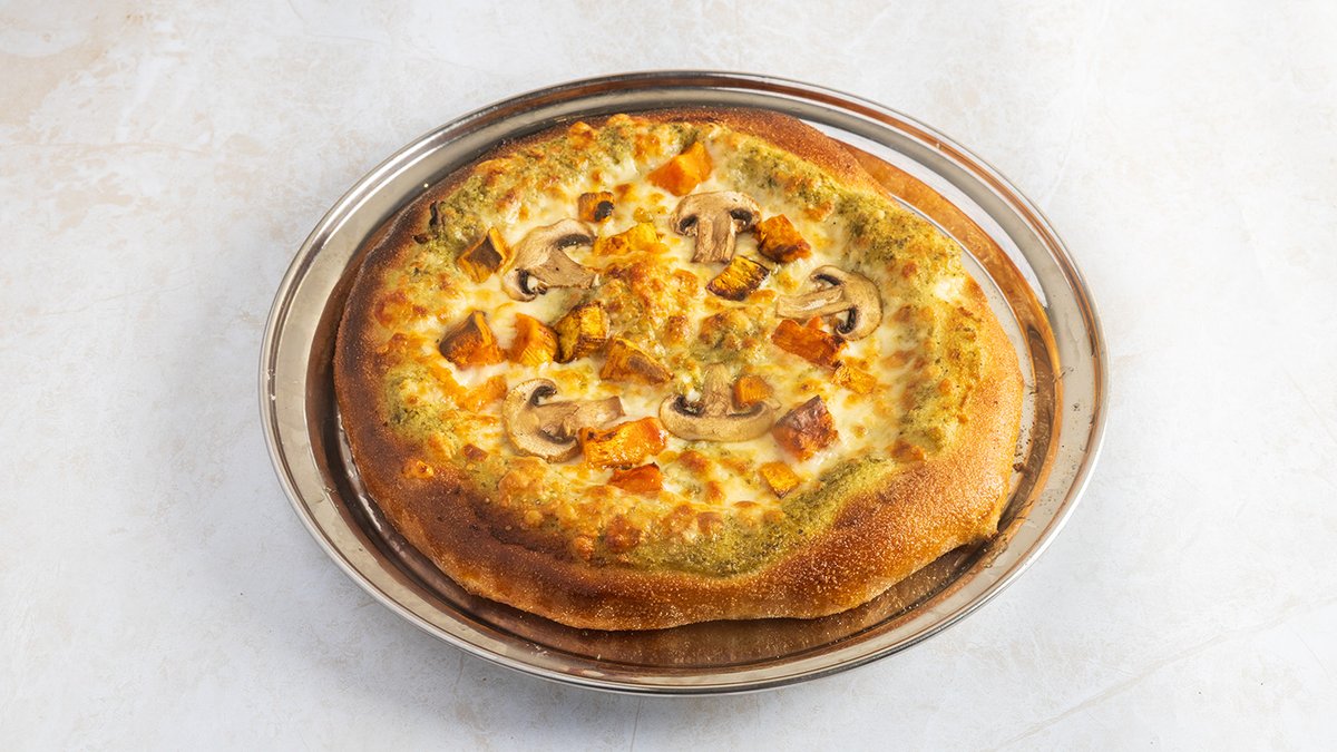 רוטב שמנת פסטו, קוביות בטטה, מיקס פטריות, מוצרלה וצהובה
