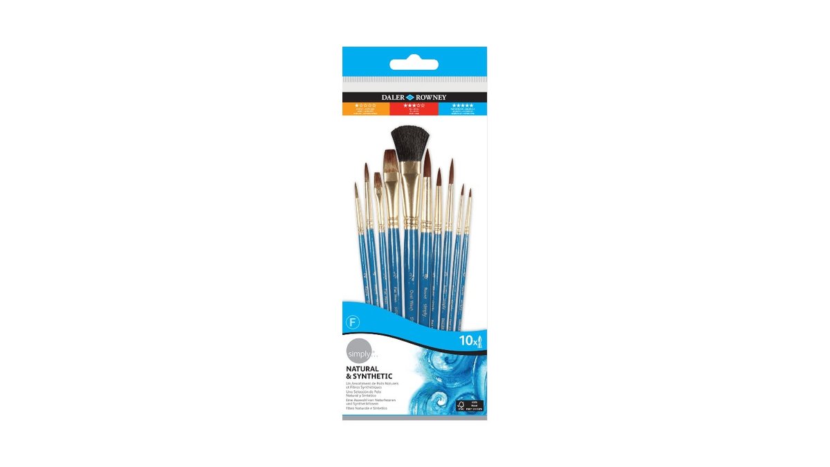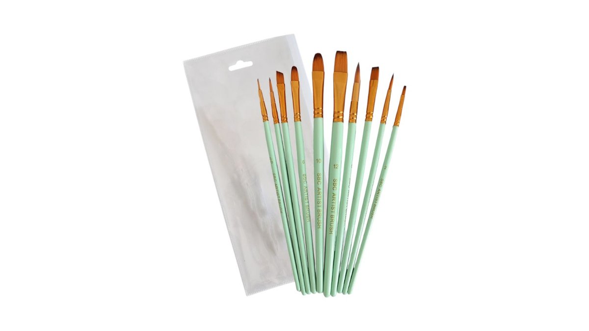 SIMPLY סט 10 מכחולים שיער מעורב לצבעי מים