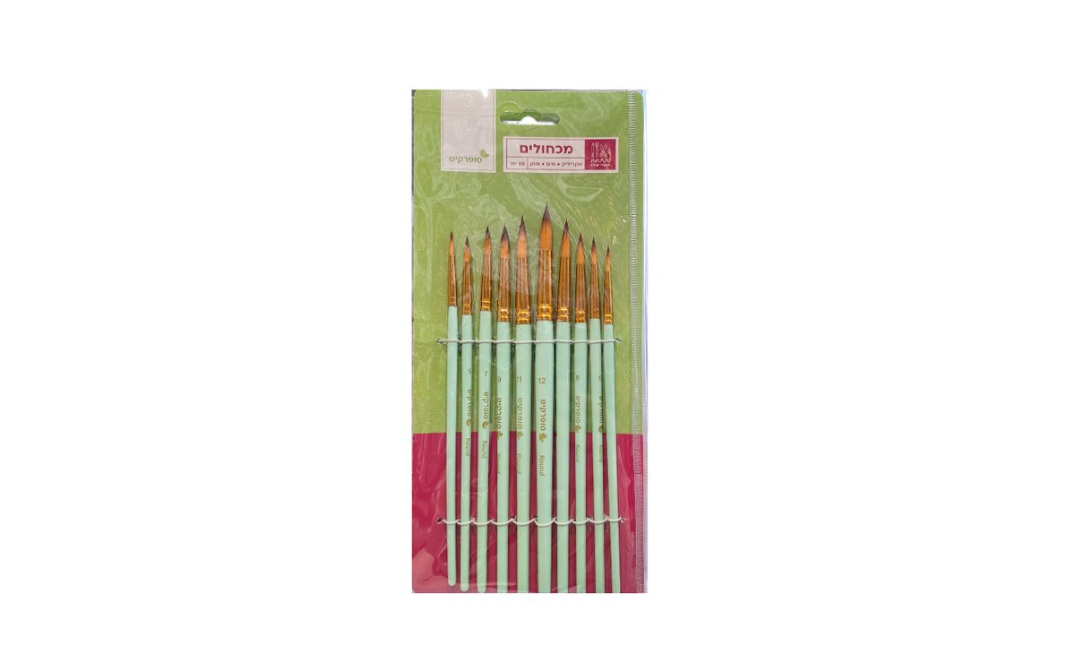 סט 10 יחידות מכחולי שיער טקלון באריזת תיק- מעורב