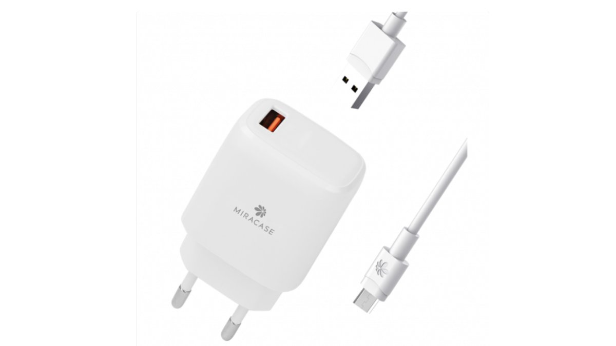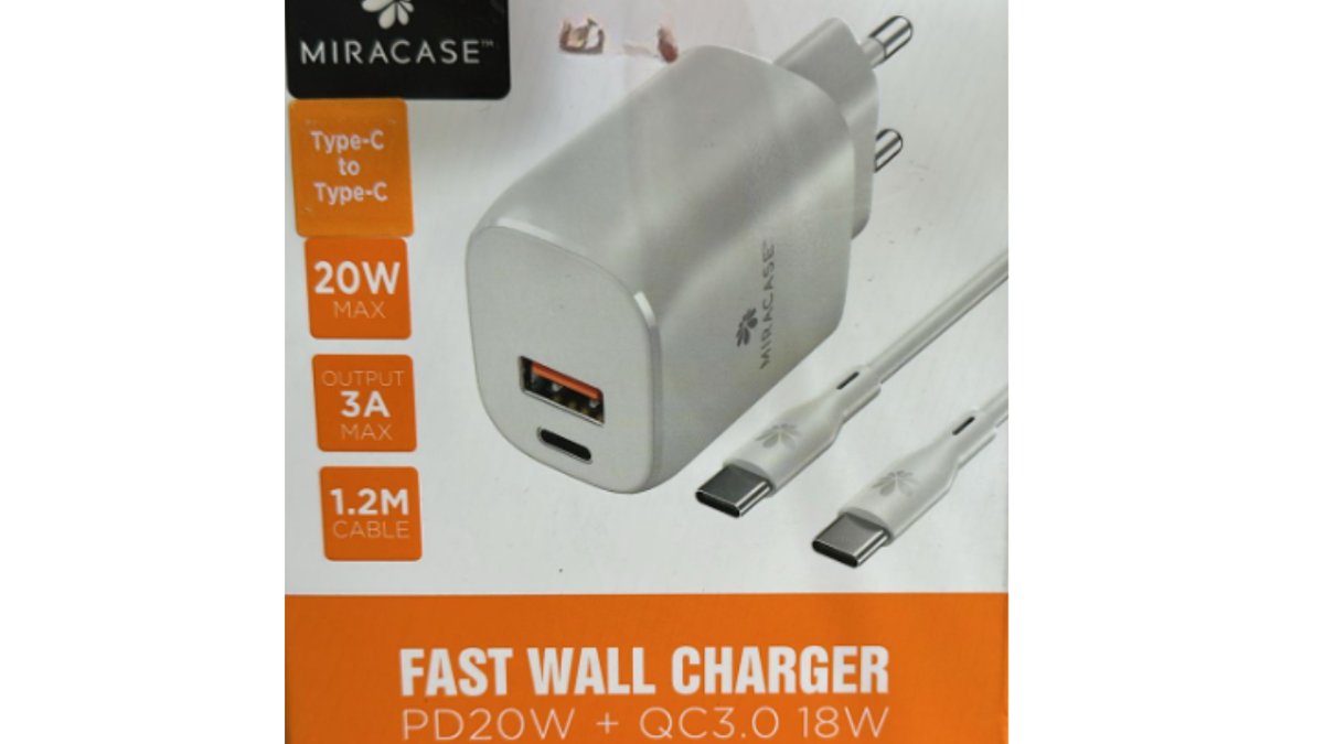 מטען קיר מהיר Miracase PD 20W + QC3.0 18W – כולל כבל Type-C ל-Type-C – יבואן רשמי
