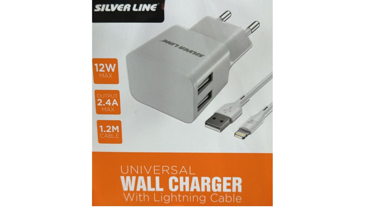 מטען קיר Silver Line 12W Dual USB – כולל כבל Lightning – יבואן רשמי