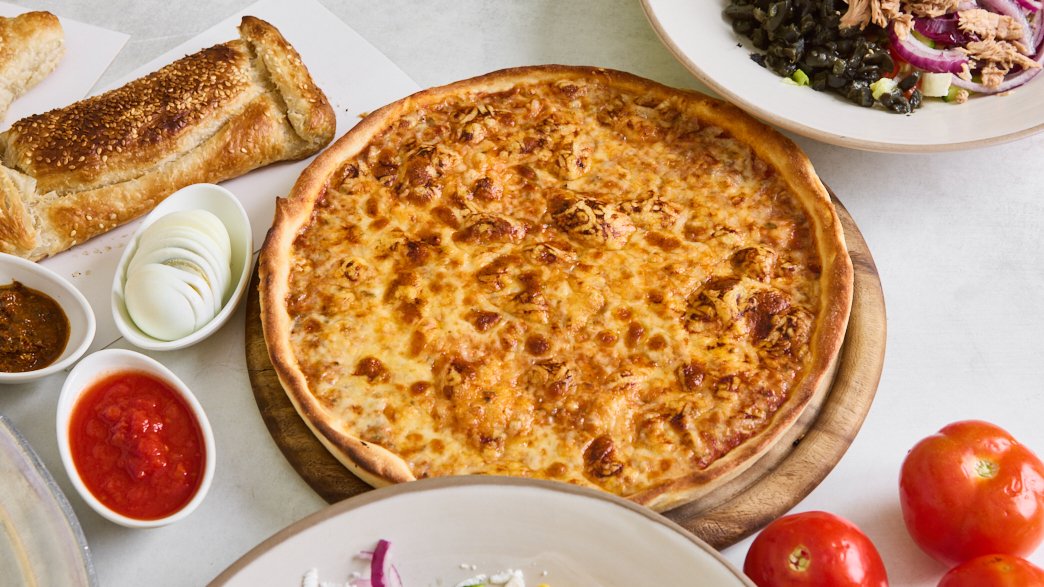 בפיצות האישיות התוספות עבור מגש שלם בלבד