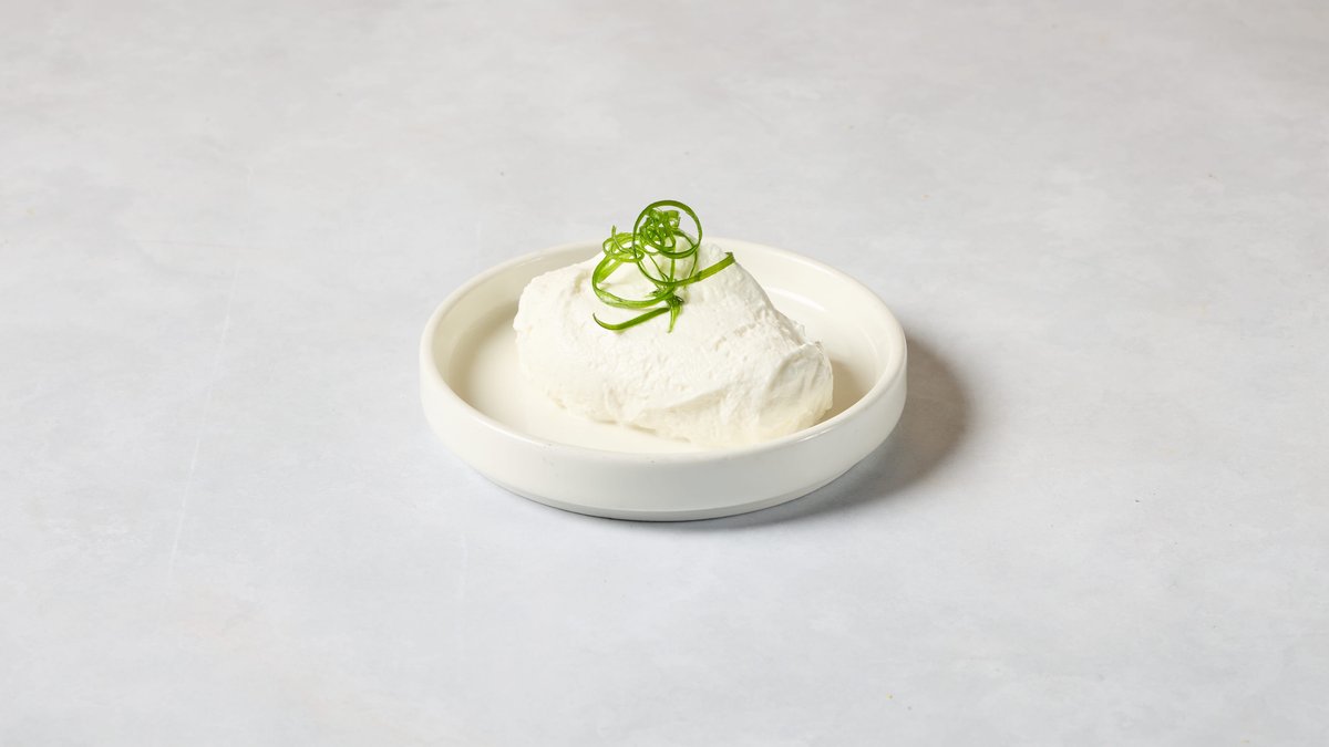 שלושה כדורי בריוש במילוי בשמל וגבינת גאודה, קרם פרש ועירית.