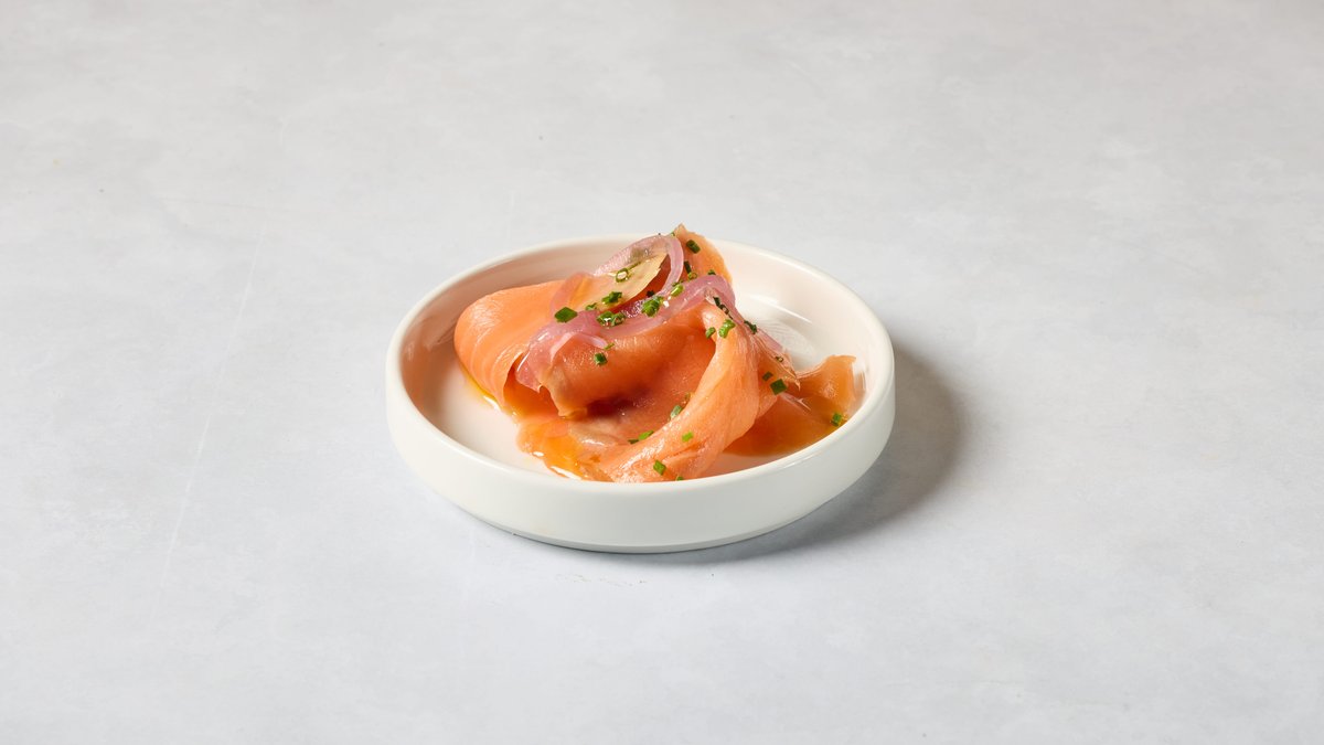 סלמון מעושן, מקושקשת עננים, גבינת שמנת, עגבניות שרי מקורמלות, צנונית, פלפל שאטה גרוס, טוביקו.