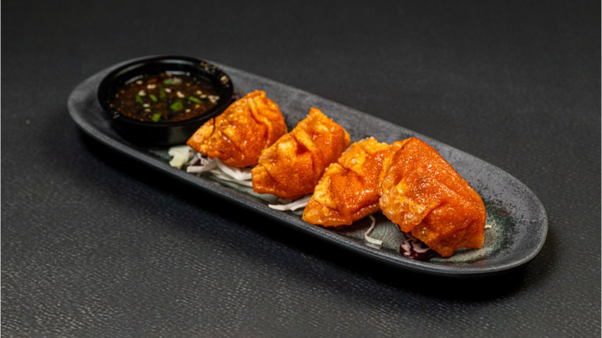 כיסונים מאודים ומטוגנים קלות, במילוי עוף ותיבול אסייאתי עדין מוגש עם רוטב פונזו