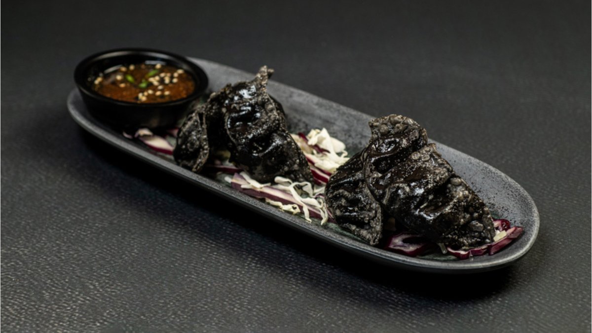 גיוזה צמחונית עשירה בבטטה ותבלינים, מוגש עם רוטב פונזו בצד