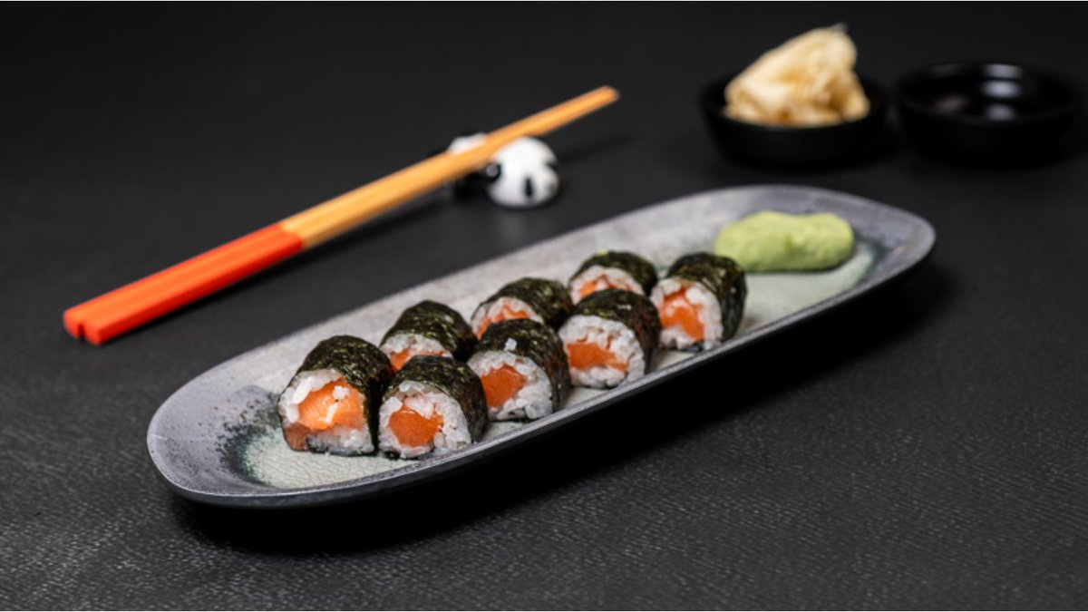 8 יחידות של רול צר עם אצה בחוץ ודג לבחירה