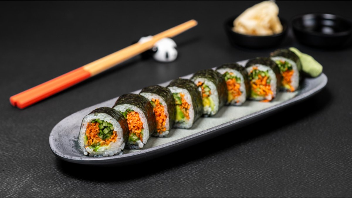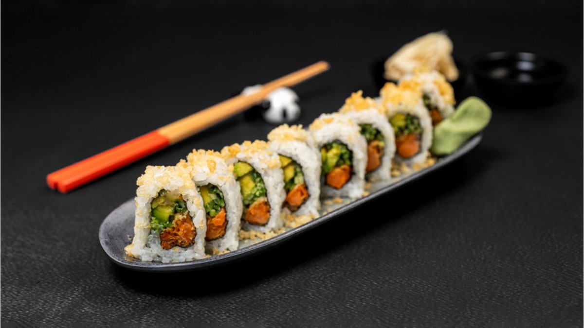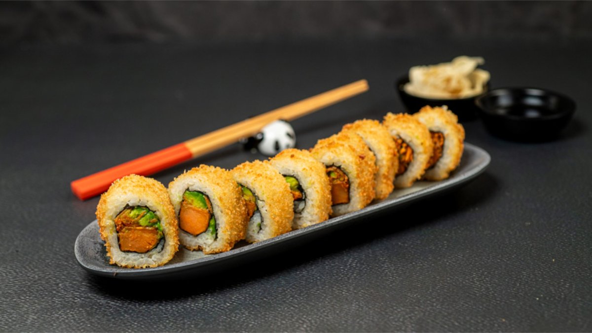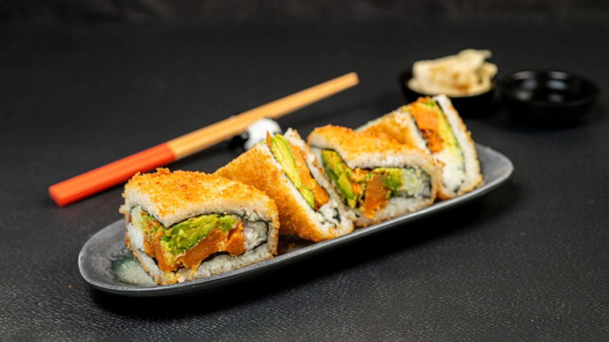 רול סושי בציפוי פריך וזהוב 3 ירקות לבחירה