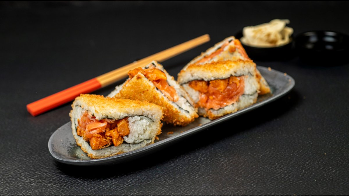 4 משולשי סושי בציפוי טמפורה ופנקו במילוי דג ו2 ירקות לבחירה