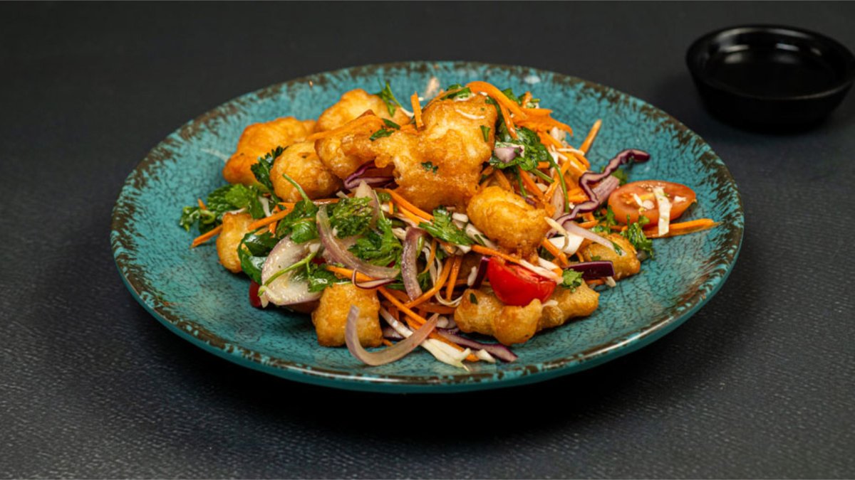 ארבע משולשי בציפוי טמפורה ופנקו במילוי ירק