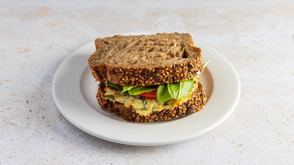 ממרח פלפלים קלויים, חסה לאליק, אבוקדו, עגבנייה וביצה קשה