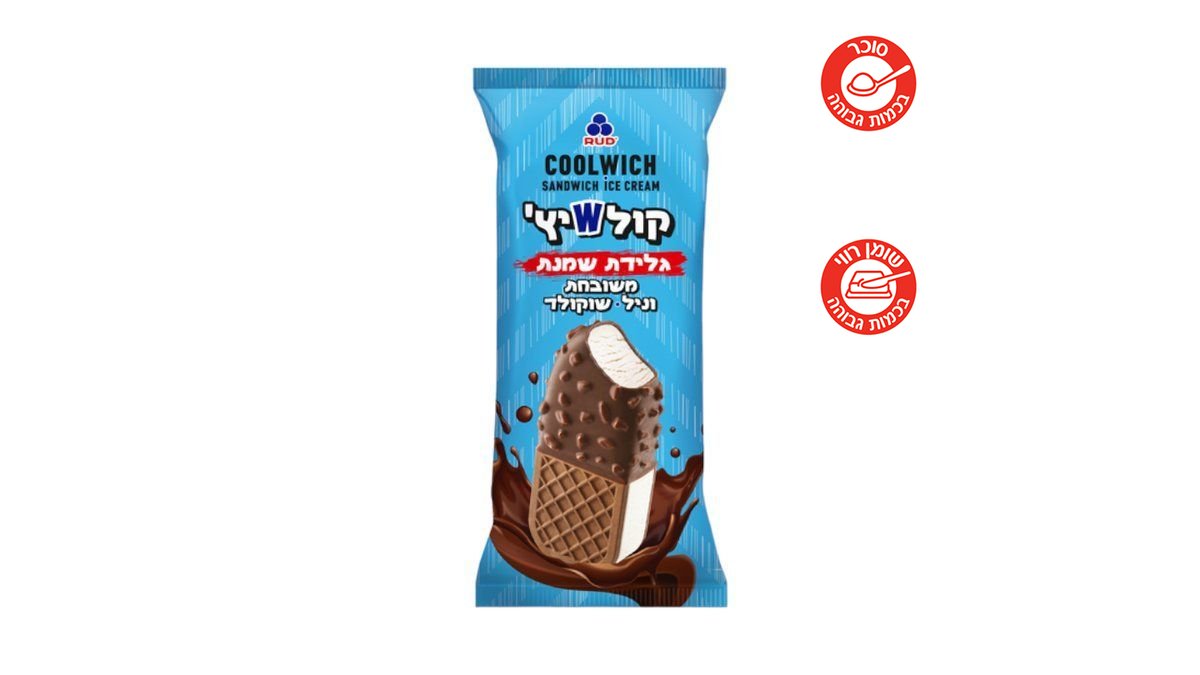 גלידת שמנת COOLWICH בטעם וניל סנדוויץ' מצופה | 80 גרם