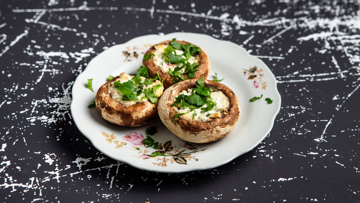 פטריות במילוי מוצרלה, שום שמיר, פרומעז, פלפל אדום ועשבי תיבול