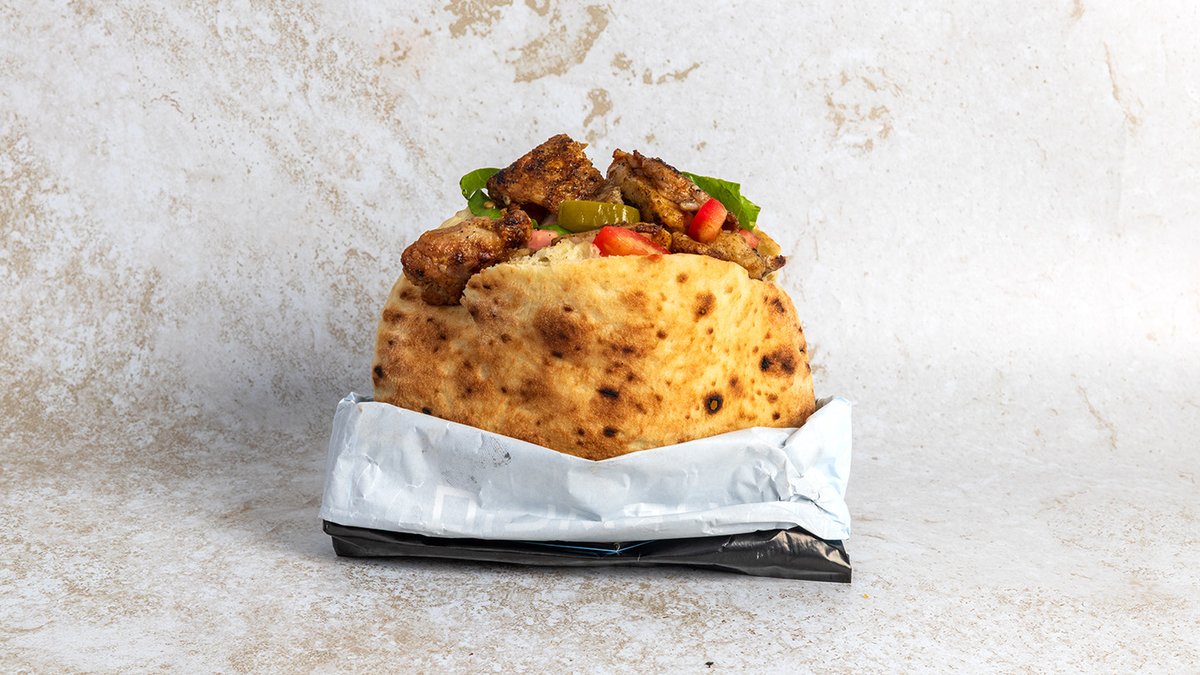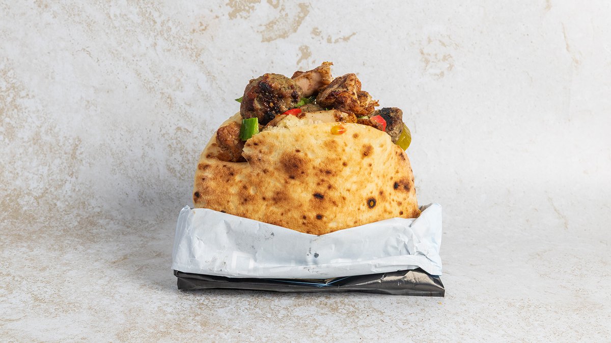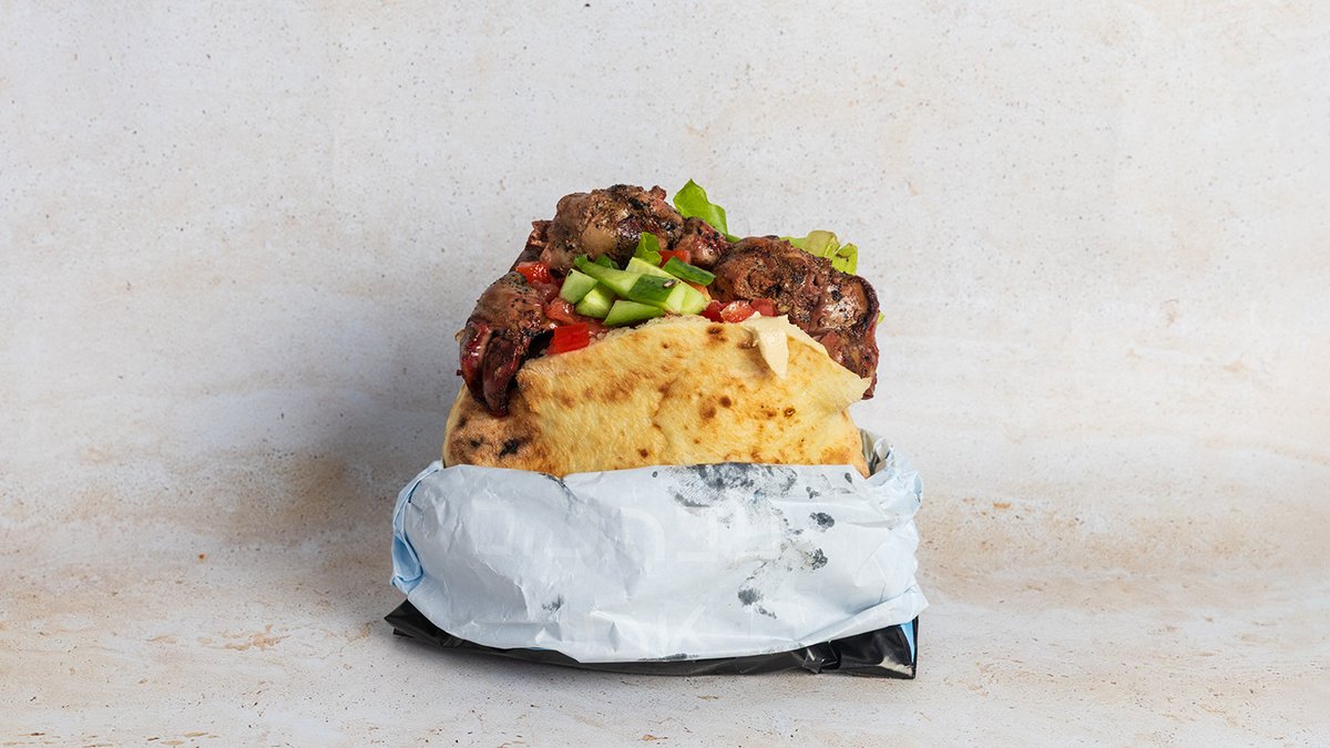 קבבוני עוף, לבבות וכבד עוף עם ממרחים, סלטים ותוספת לבחירה מוגש עם ירקות מדורה מוגש ללא צ׳יפס, התמונה להמחשה בלבד