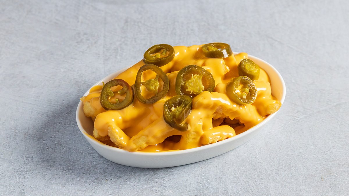 צ׳יפס, גבינה, רוטב בריקסטא, רוטב חריף, חלפיניו ובשר טחון | بطاطا مقلية، جبنة، صوص بريكستا، صوص حار، هالابينو ولحم مفروم