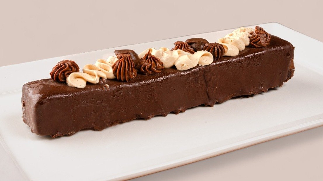 שכבות של קרם שוקולד בלגי וקרם פרלינה אגוזים, על מצע קריספי של שוקולד ונוגט, בציפוי קראנצ'י שוקולד