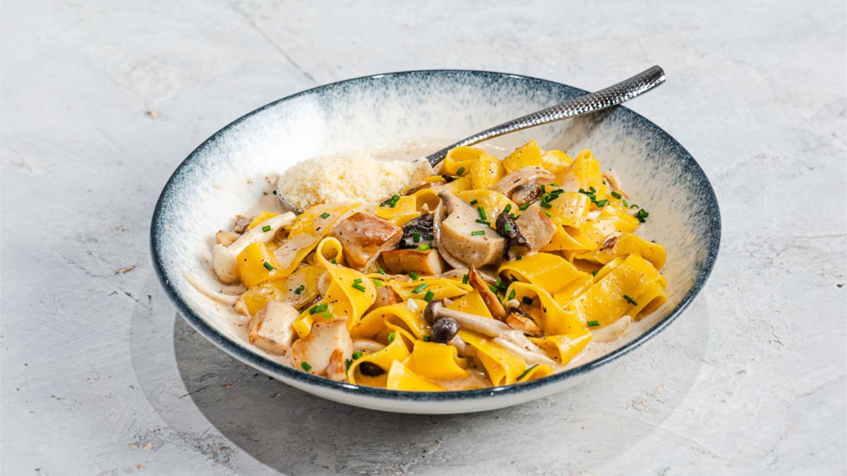 רוטב שמנת, פטריות טריות ובזיליקום טרי