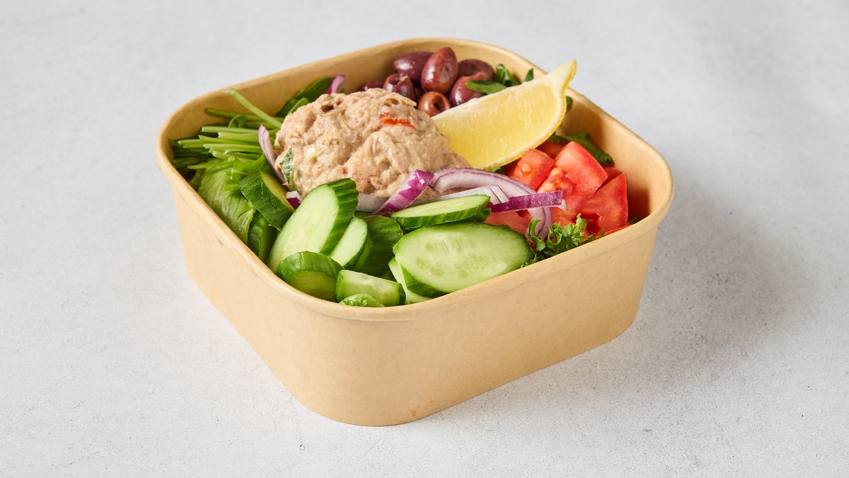 סלט טונה, חסה לליק ועגבניה בבגט במחמצת