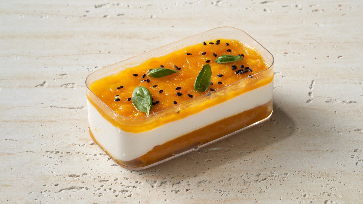 ביסקוטי, קרם פירות טרופיים, קוביות מנגו ופסיפלורה