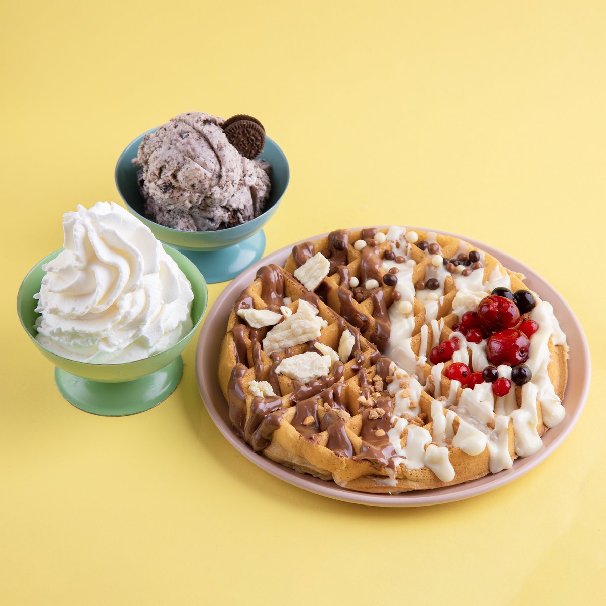 וופל בלגי המוכן במקום עם מגוון תוספות לבחירה