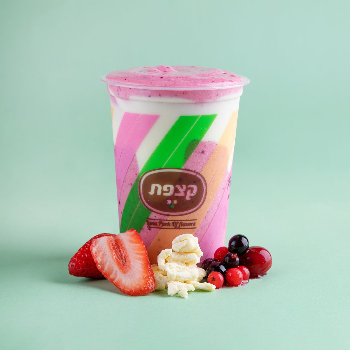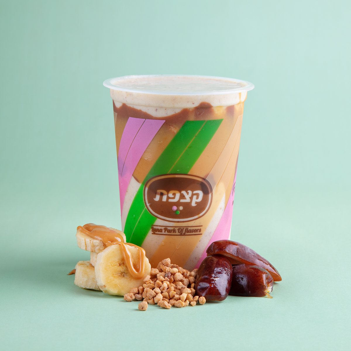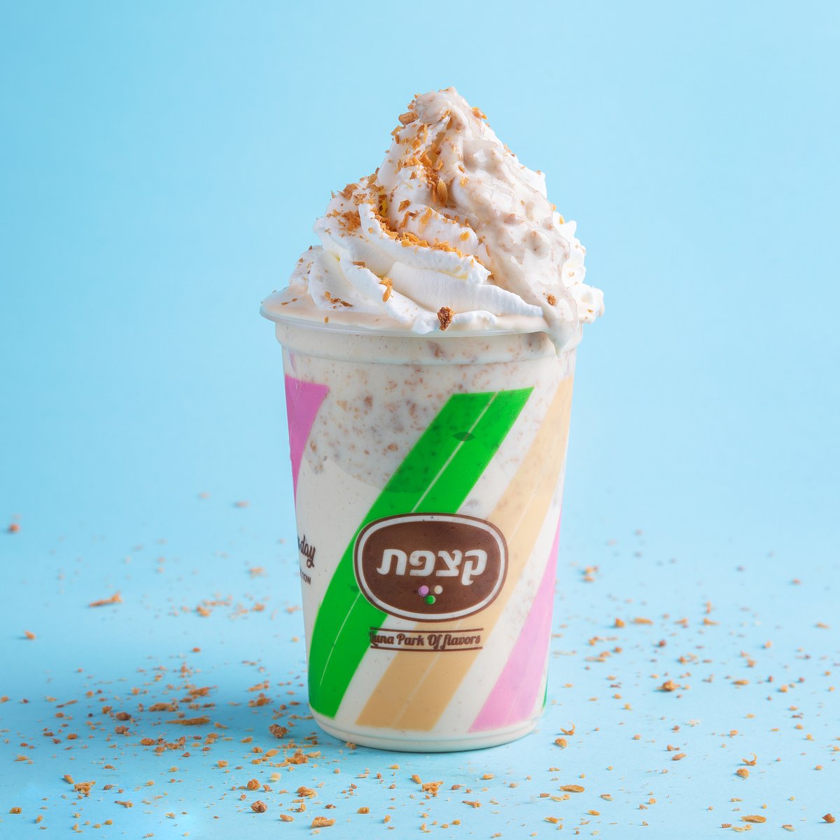 ניתן לבחור עד 2 טעמים. מוגש עם 5 גביעים, כוסות, כפיות ורוטב/תוספת לבחירה