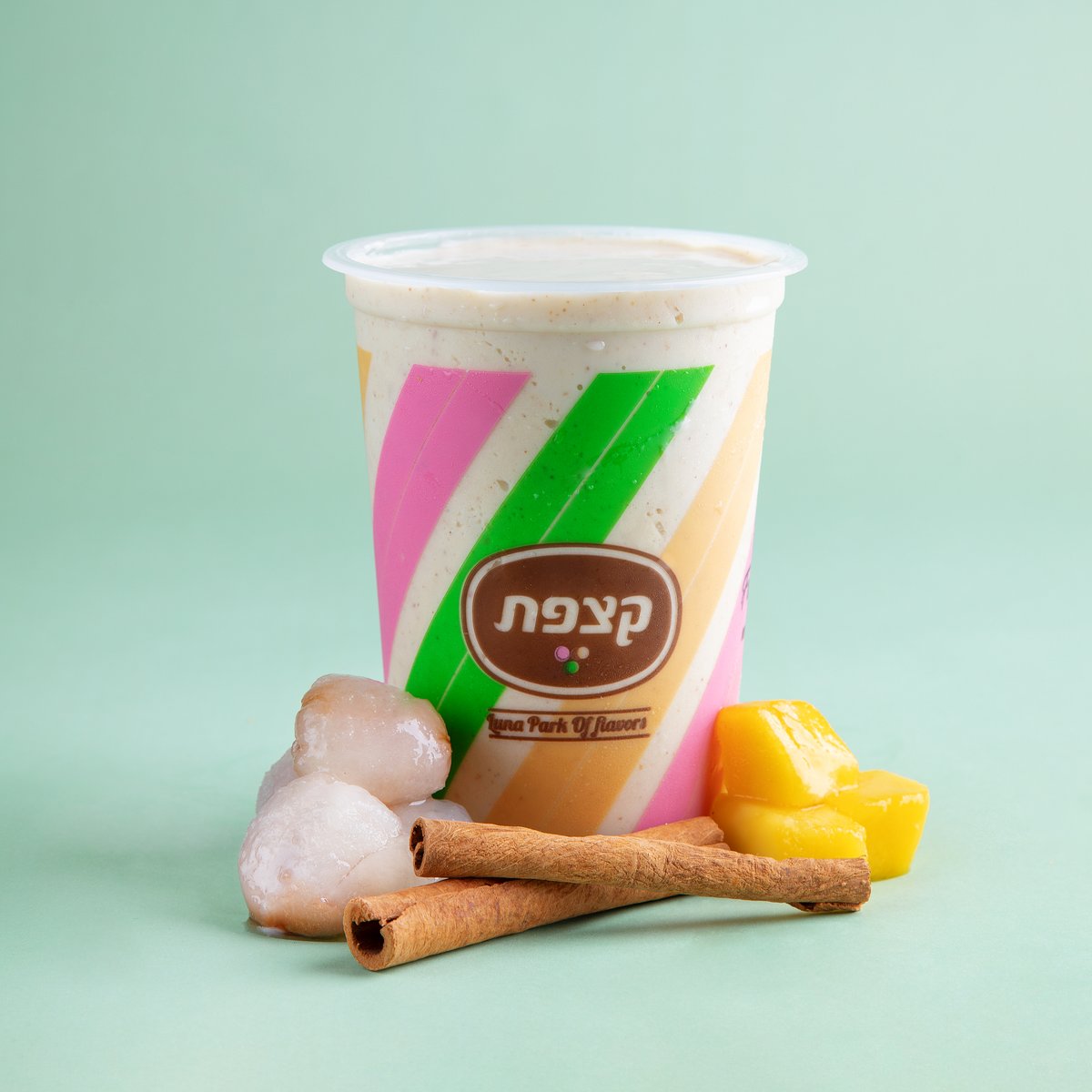 שייק על בסיס יוגורט, מנגו, ליצ׳י, קינמון ואגוזי קליפורניה