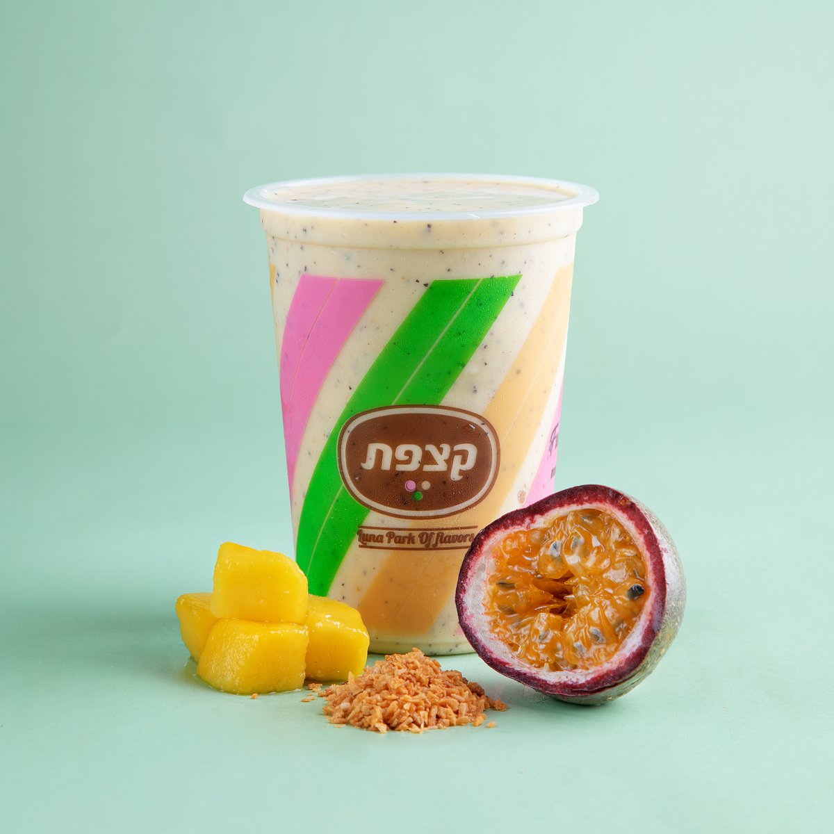 שייק על בסיס יוגורט, מנגו, פסיפלורה, אננס וקוקוס