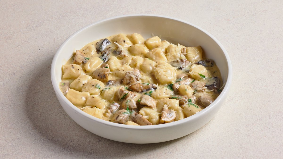 שלל פטריות, חמאה, אגוז מוסקט, יין לבן, שמנת ופרמז׳ן