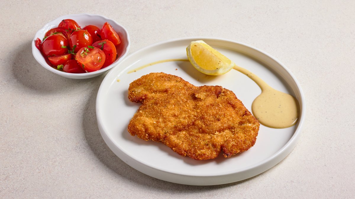 חזה עוף מושרה במרינדה בציפוי פריך וקרם חרדל