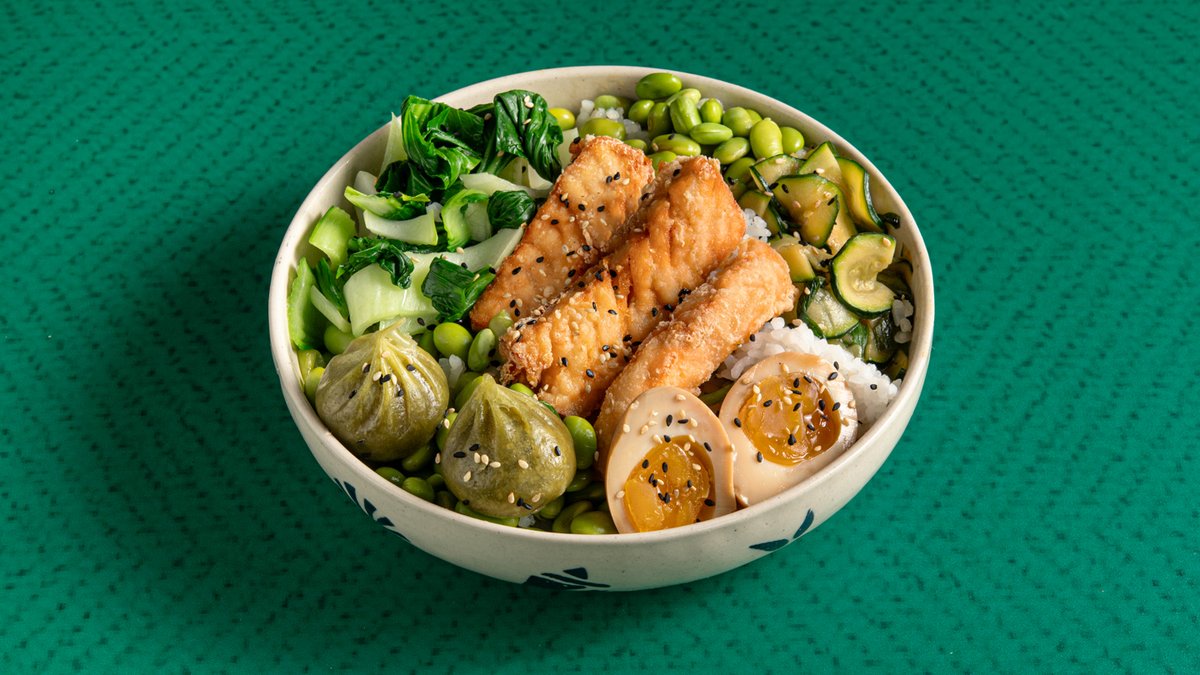 פוקה חמים ונעים - רצועות סלמון טמפורה, דמפלינג תרד, ביצת ראמן, בוק צ׳וי, אדממה, זוקיני צרוב, בצל ירוק ושומשום על מצע אורז סושי. מוגש עם רוטב הבית. ניתן להחליף חלבון לשרימפס או טופו בטמפורה
