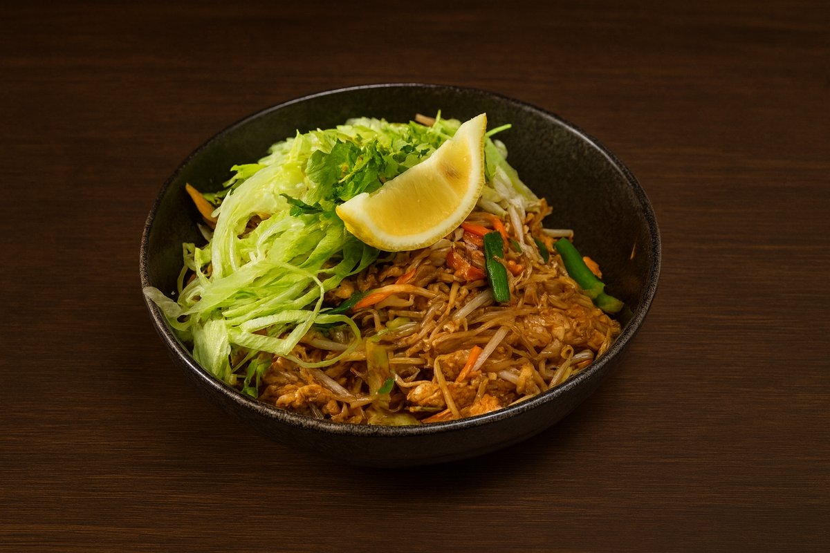 אטריות אורז, נתחי עוף או טופו צרובים, נבטים, בצל ירוק, כרוב, ביצה וגזר בסויה- שחורה. רוטב דגים וצדפות, כוסברה ולימון ** אפשר גם בגרסה צמחונית