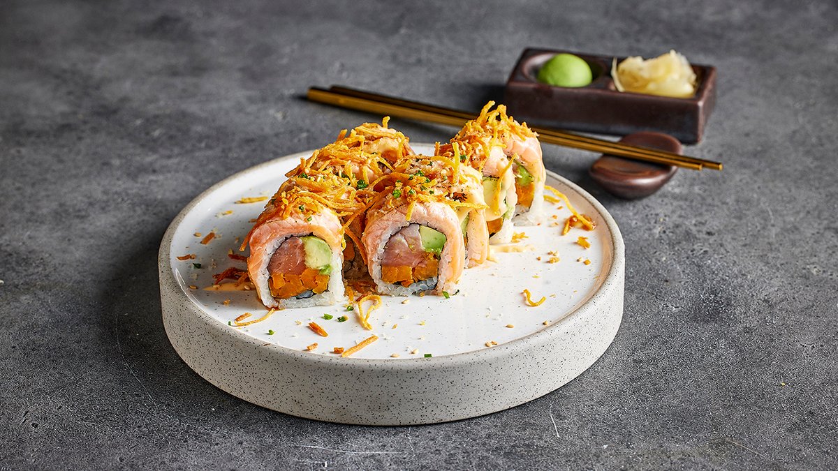 8 יח' עבות של אצת נורי ואורז במילוי עד 4 תוספות לבחירה עטוף אורז ושבבי פנקו.