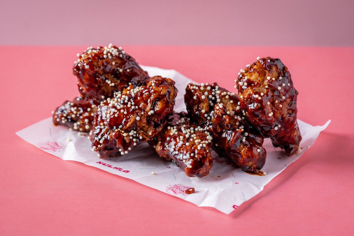 כנפי עוף פריכות בזיגוג של רוטב אסייתי עם פצפוצי אורז יפנים