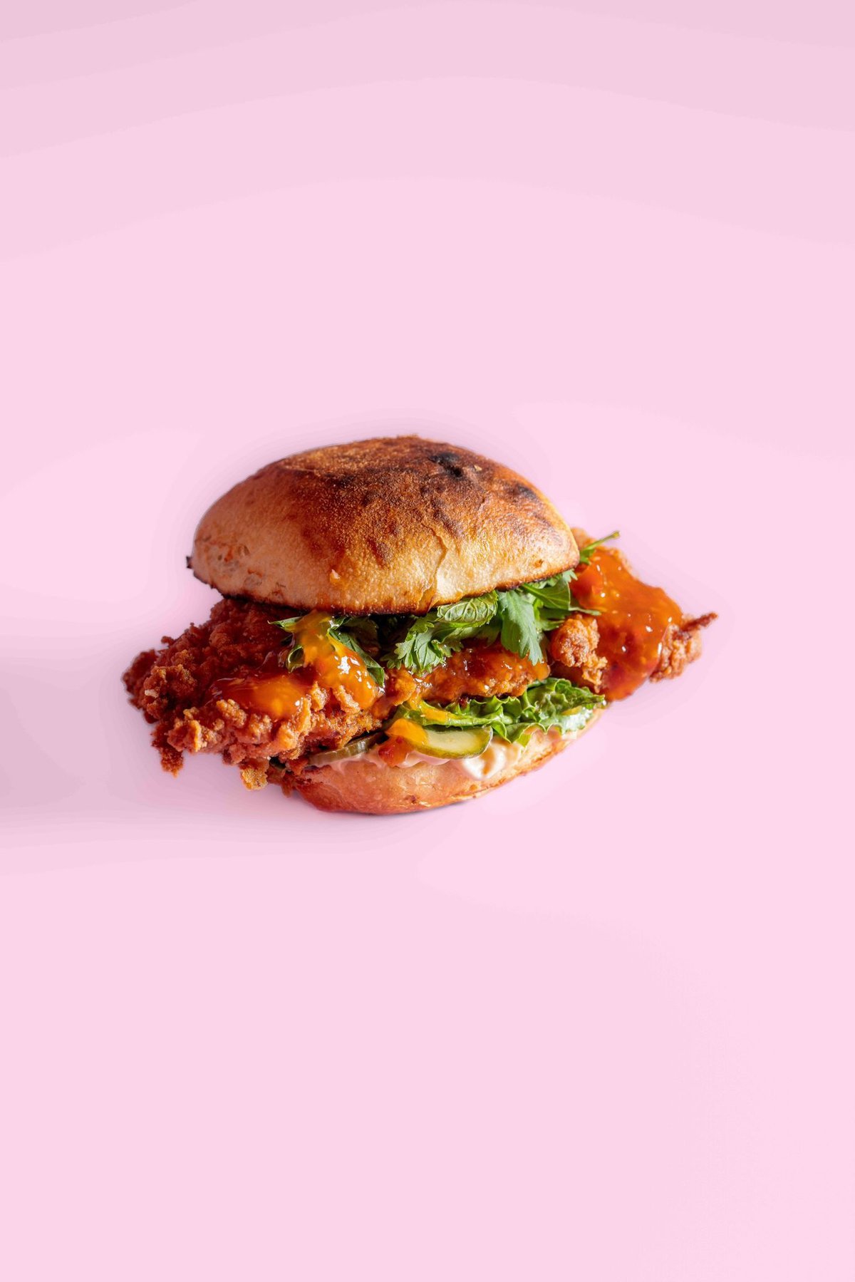 קריספי פרגית צ'יקן בזיגוג האני-באטר(חלבי) מוגש בלחמניית אהרוני'ס, חסה, חמוצים אסייתים ואיולי סרירצ׳ה *לא ניתן לערוך שינויים במנה