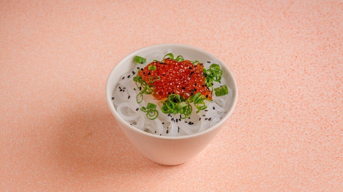 איטריות עמילן שקופות וביצי דגים ברוטב יפני