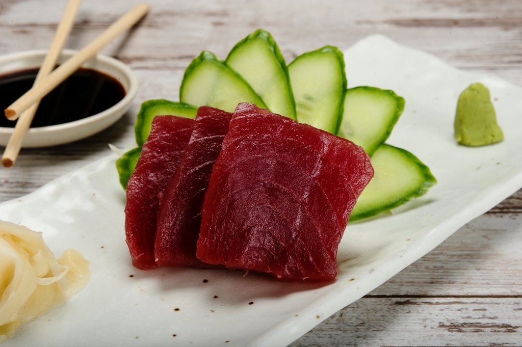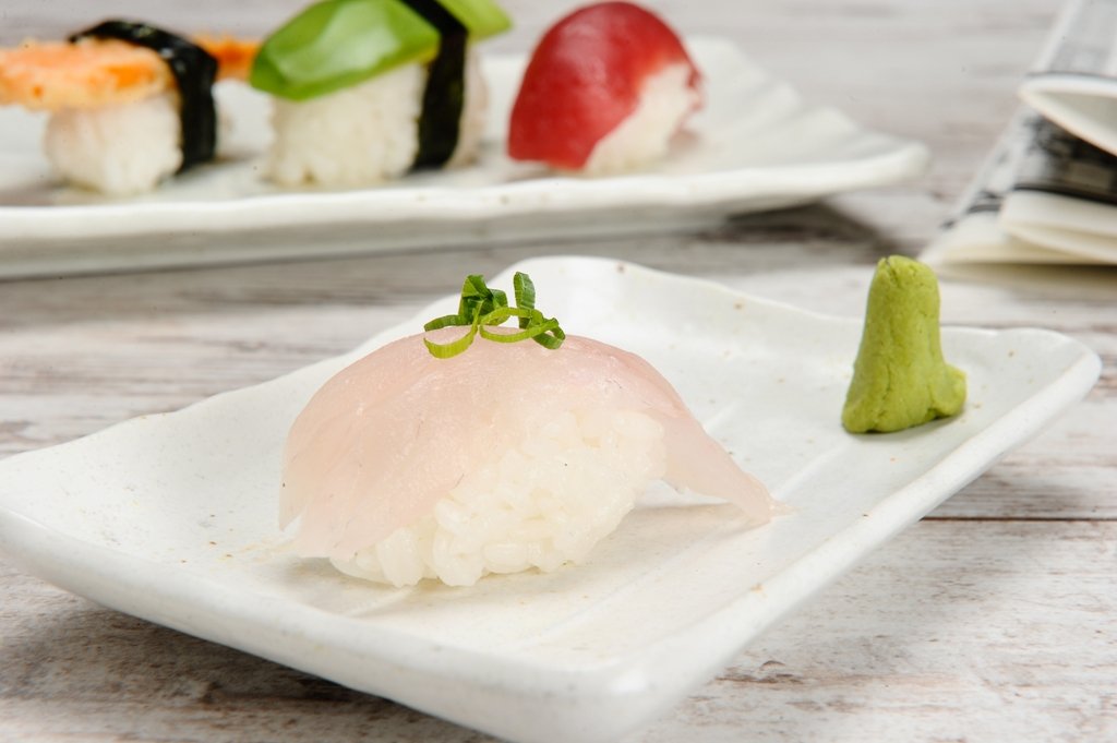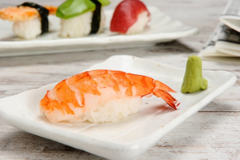 סשימי של סלמון, טונה ובס, 3 יח', ניגירי סלמון, שרימפס ובס או דניס 2 יח'