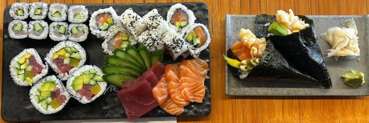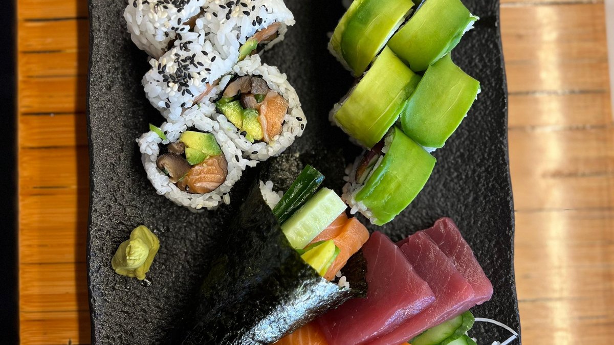 סשימי סלמון, טונה ובס (סה"כ 12 יח') נגירי סלמון, טונה, בס וסלמון חם (סה"כ 12 יח'), I/O סלמון אבוקדו ומלפפון, I/O סלמון, שיטאקה ומלפפון, I/O טונה, מלפפון ובצל, I/O בס, בטטה בטמפורה וקנפיו, ו/0 טמאגו מלפפון קנפיו, ו/0 אבוקדו, מלפפון וגזר I/O סלמון מבושל עם אבוקדו, מלפפון ועטוף בשביבי טמפורה